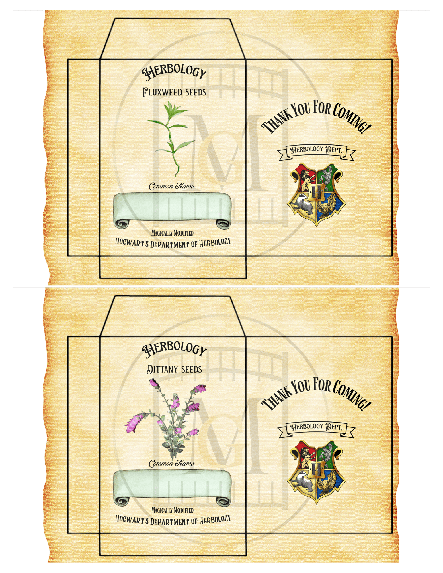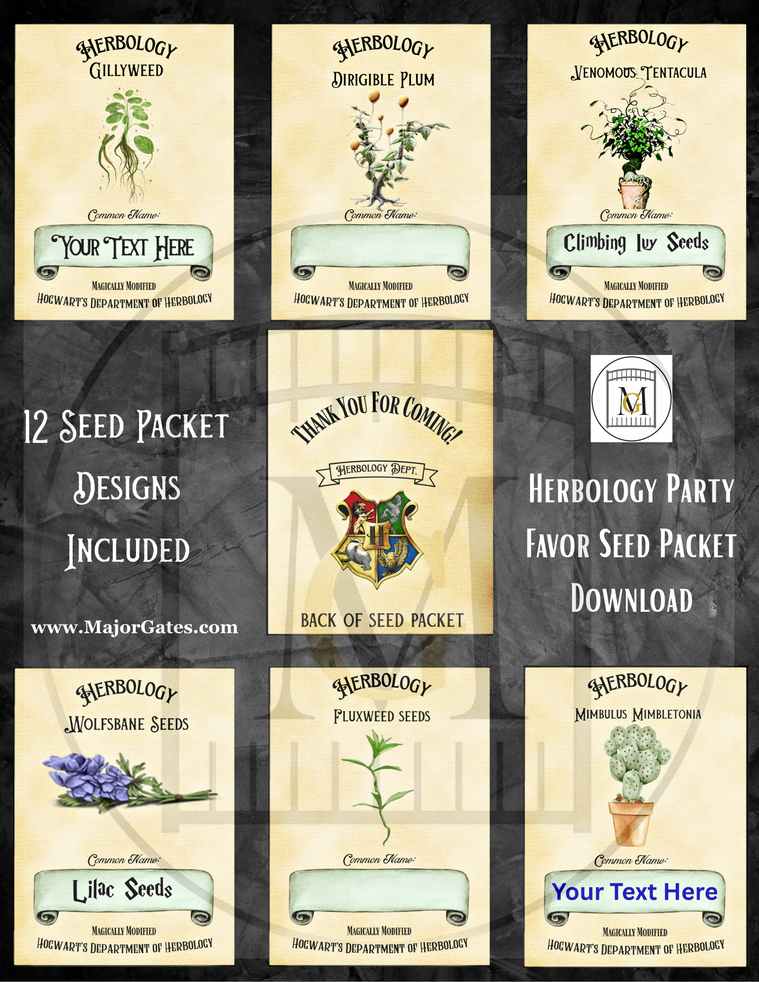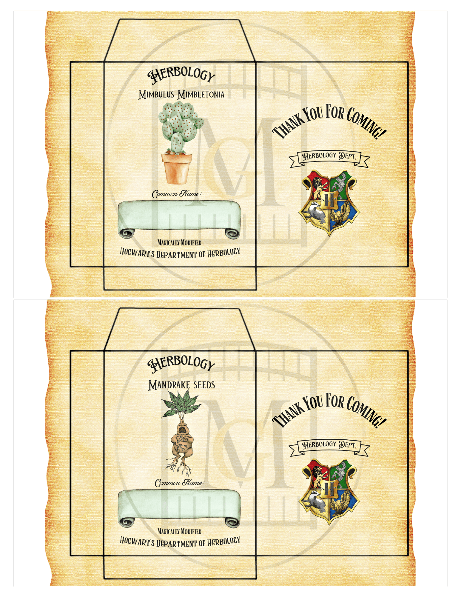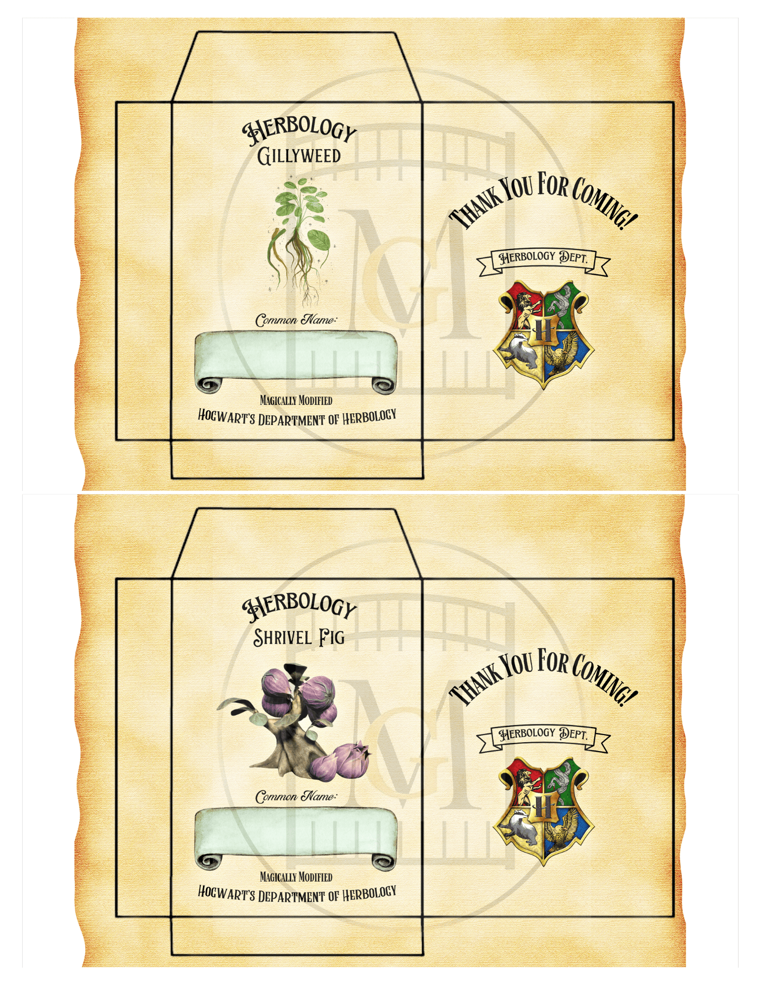 Get this Wizard HERBOLOGY Favor Seed labels download and give a fun gift to your guests for a Wizard themed party. This offering has 12 Hogwarts Herbology Seed Labels. Â You can edit the label with the common name of your choice for seeds that are available in your area. Â For example, choose seeds that grow well in your zone and enter the text or hand write in the common name area. Â Seed packets are 9.5cm long x 7cm wide.